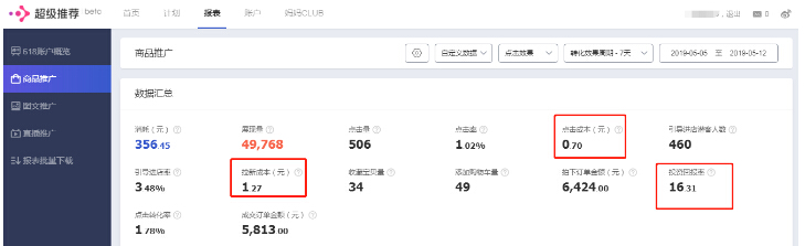 超级推荐不同于直通车,点击率前期不要过于重视,着重放在点击成本和拉新成本上,先把这两项指标降下来,降低了点击成本投资回报率也会相应的得到提升,超级推荐成本低,可以作为一个提高投产的工具。