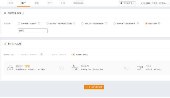 第二步:来到直通车单独创建一个计划,已经开通直通车的同学可以跟着老师一起,营销场景一般可以选择日常销售或者说自定义都是可以的。