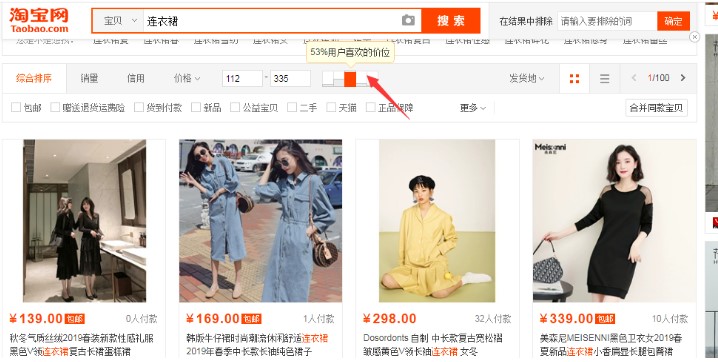 虽然说现在国人的消费能力明显提高,但是物美价廉的产品一样是受欢迎的。一个合理的价位严重影响着宝贝的点击率及转化率。尤其是想做中高端产品的卖家更要注意,毕竟现在大卖家在产品的价位上都是很小心的。我们可以搜索关键词,然后看下图,下图的比例不是下单比例,而且点击比例,点击率高说明客户接受程度高。所以我们一定要选择点击率相对高的。
