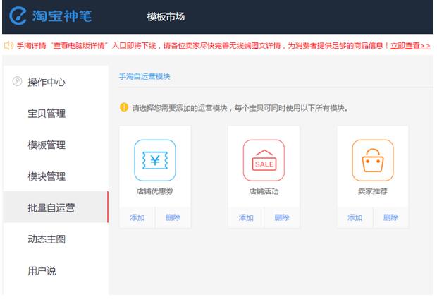 打开神笔首页-----操作中心-----批量自运营------活动店铺
