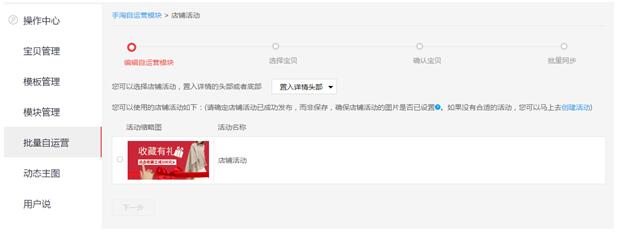 然后在店铺活动添加刚才我们在无线运营中心新建的活动页面