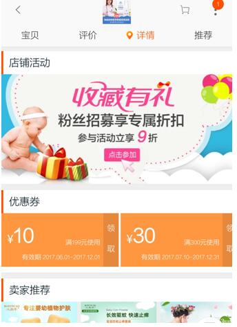 1、手淘宝贝页面显示的店铺活动头图设计要吸引顾客,并且要有诱导点击收藏的按钮,吸引买家点击;