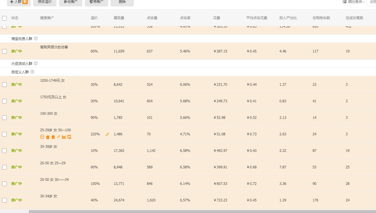 重点针对人群进行二级或者三级组合,提高人群溢价。